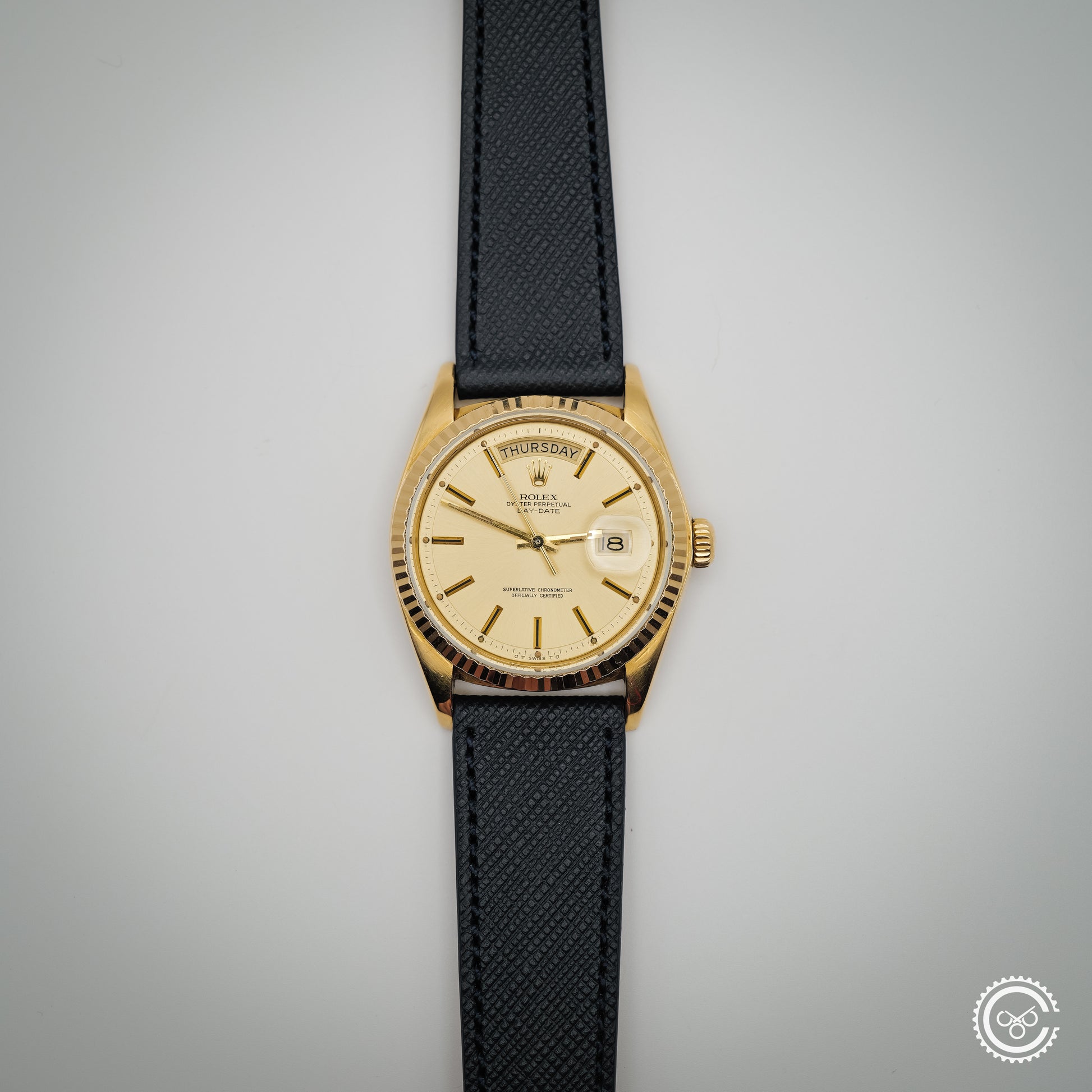 This 1977 example in 18K yellow gold carries all the warmth and charm that make these early models so special. The champagne dial is beautifully balanced, catching light with a gentle tone that feels unmistakably vintage. The fluted bezel remains crisp, and the case has been beautifully preserved, maintaining its strong original profile.