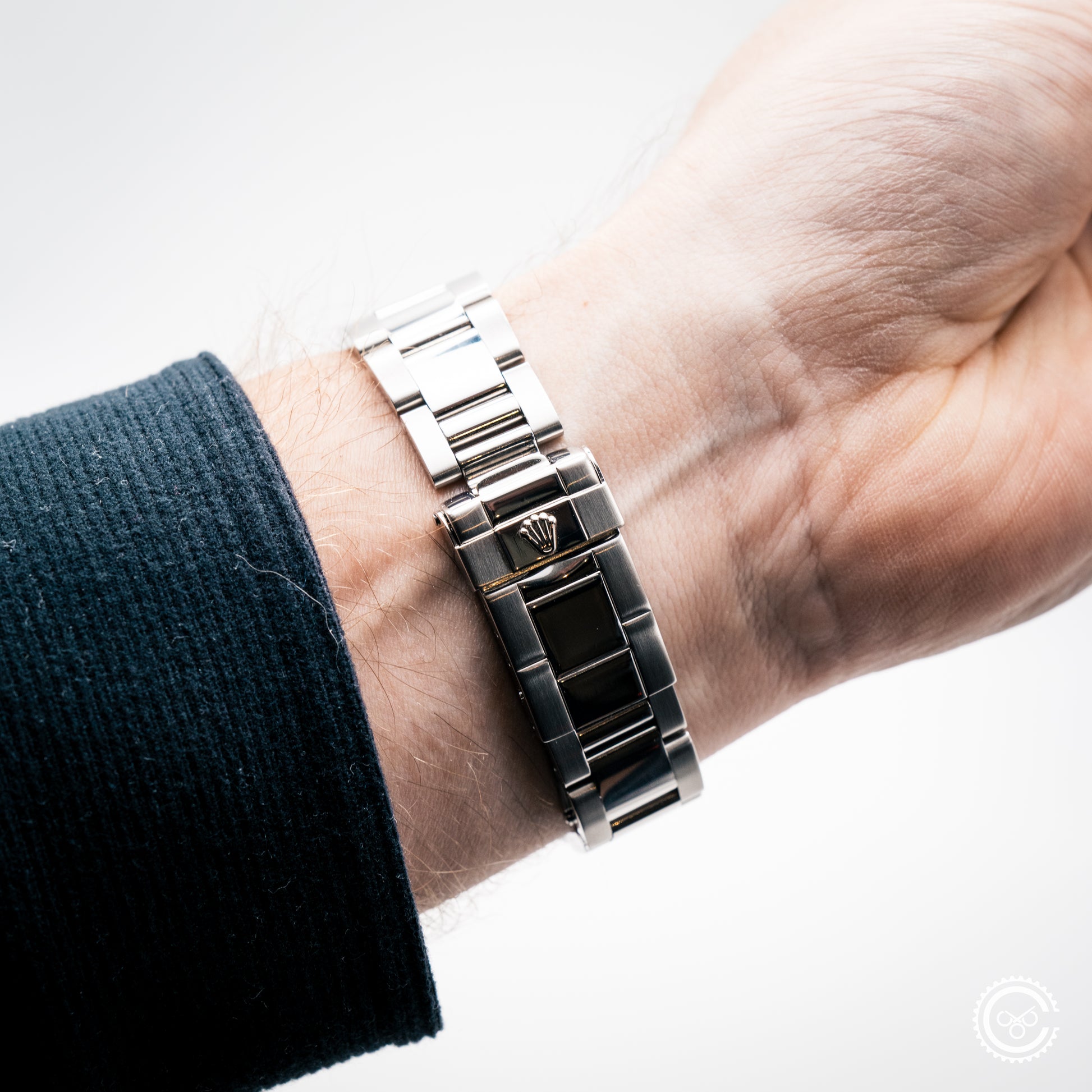 The watch is offered in very good overall condition. The case remains strong with defined edges, and the dial is clean with excellent colour and balance. The Oyster bracelet shows light stretch consistent with age, and the clasp remains secure with the safety lock closing tightly as intended, with only minor wear to the folding section — a common trait on examples from this era.